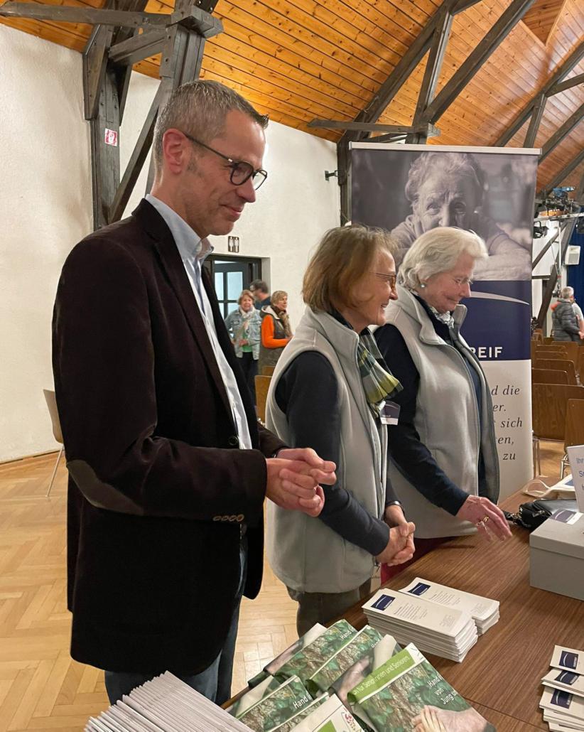 Dekan Dietmar Zoller erinnerte daran, wie wichtig Vernetzung sei. Er freue sich daher, dass Silberstreif seit kurzem auch ein Büro im Haus der Familie Bad Bergzabern betreibe. In Bad Bergzabern gebe es auch einen Arbeitskreis „Leben im Alter“, mit dem das Thema vorangebracht werden soll. Gerade der Aspekt des Wohnens sei dort besonders relevant. „Auch die ambulante und die stationäre Pflege werden in Zukunft herausfordernd, denn Menschen sollen selbstbestimmt und würdevoll leben können, auch im Alter“, so Zoller. Er betonte, dass das Haus der Familie, das von der Protestantischen Kirchengemeinde Bad Bergzabern getragen wird, auch viele Menschen mit Migrationshintergrund begleite, ebenfalls ein Arbeitsfeld, das dem Miteinander in der Gesellschaft diene.